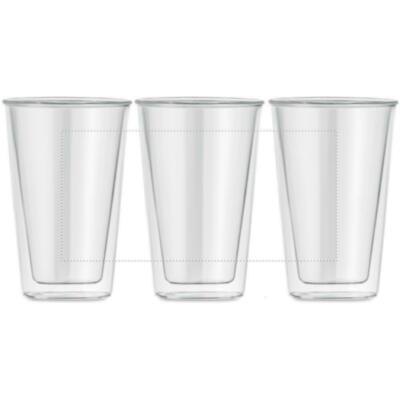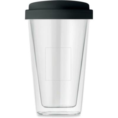 Vaso de cristal de borosilicato de doble pared con tapa de silicona. Capacidad 350 ml.