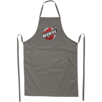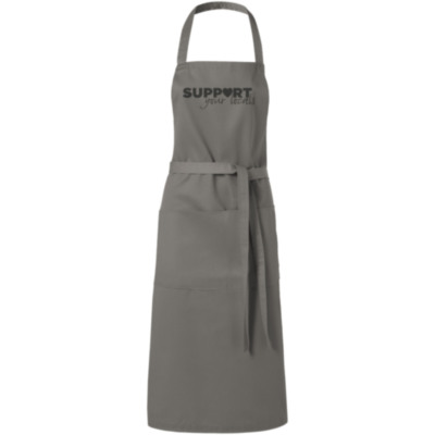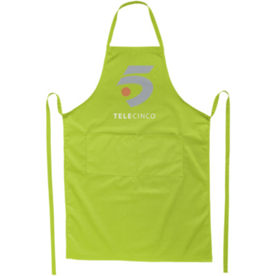 Whether equipped with or without a logo, protecting beautiful clothes while cooking is easy with the Viera apron. The apron consists of 240 g/m² twill (65% polyester and 35% cotton), which makes the apron thick and sturdy, while still soft and comfortable to wear. The two front pockets offer a quick way to store kitchen essentials, and the 1-metre-long bow tie makes this apron a one-size-fits-all. Besides this, the Viera apron offers multiple options for adding any logo.