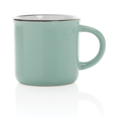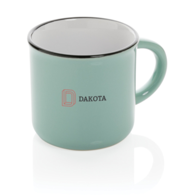 This mug is made from ceramic for durability and lasting use. The mug has a vintage look and features a curved handle for easy grip. Dishwasher safe in accordance with EN12875-1 (at least 125 washing cycles) for all decoration methods. Packed in gift box. Capacity 280ml.