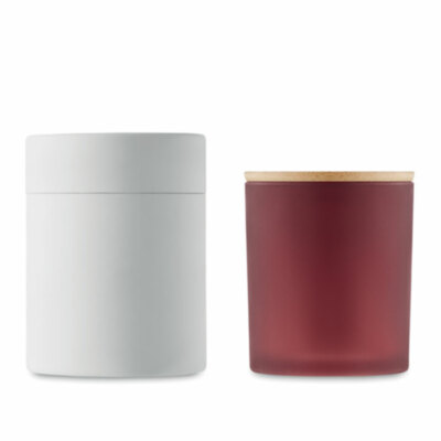 Vela de cera con fragancia de plantas en un tarro de cristal opaco con tapa de bambú. 280 gr. Tiempo de combustión: 46 horas. Presentada en una caja de papel tubular de regalo.