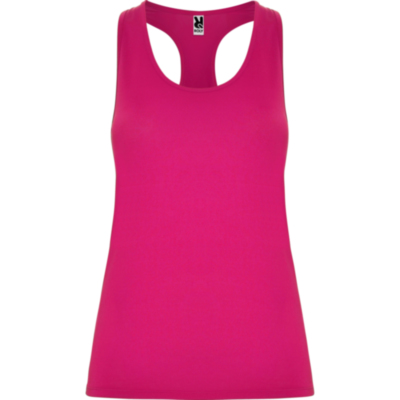 Camiseta deportiva con espalda estilo nadadora. Tejido poliéster con tacto algodón. Tejido adaptable al cuerpo. Corte entallado.