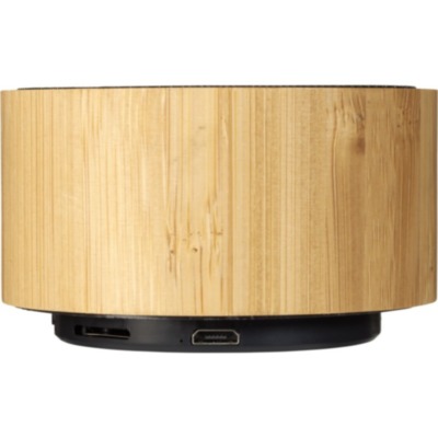 El altavoz Bluetooth® de bambú "Cosmos" atrae la atención de todos. El cuerpo del altavoz está hecho de bambú auténtico y, gracias a la salida de 3 W, produce un sonido claro y cristalino que se puede escuchar durante aproximadamente dos horas y media al máximo volumen. El altavoz también cuenta con un sintonizador de radio FM, una entrada para tarjeta SD y un puerto USB. Controles de música integrados y un micrófono para manos libres. Bluetooth® 5.1 con un alcance de 10 metros.
