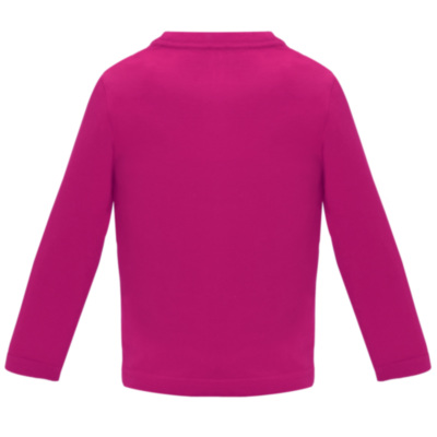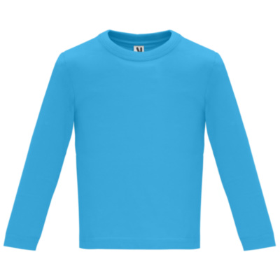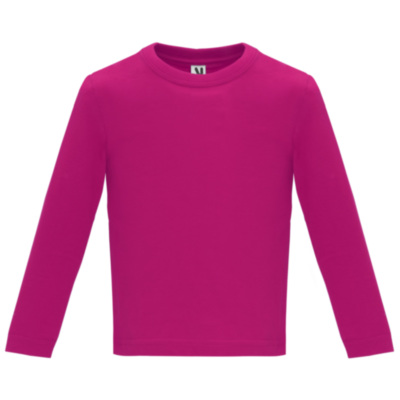 Camiseta de manga larga especial para bebé, confeccionada en tejido en galga fina y acabado compactado. Cuello redondo y apertura en hombro con corchetes desde la talla 6M a 18M. La talla 2A sin apertura en el hombro. Costuras laterales.