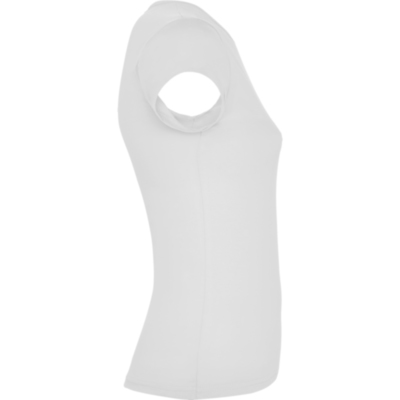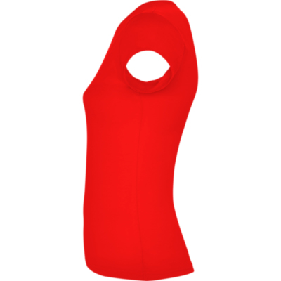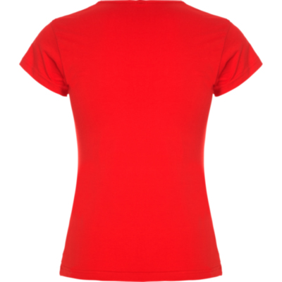 Camiseta de manga corta con cuello fino ribeteado. Tejido de fácil lavado y secado, muy confortable. Corte entallado con costuras laterales.