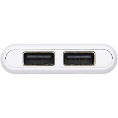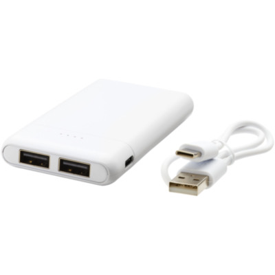 Batería externa de bolsillo de alta densidad de 5000 mAh. Entrada tipo C (5 V/2 A) y doble salida USB A (5 V/2 A). Incluye cable de carga de plástico TPE sin PVC. Se entrega en una caja de regalo "Avenue".