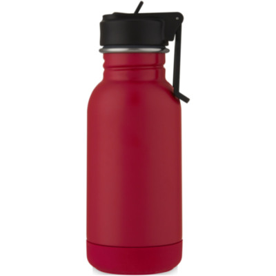 Bidón deportivo de acero inoxidable 18/8 de una sola pared y base de silicona antideslizante. Cuenta con una tapa de rosca con pajita y un asa de transporte, por lo que es perfecta para mochilas. Amplia abertura para facilitar el llenado, vertido y limpieza. No contiene BPA y se ha probado y homologado según la legislación alemana sobre seguridad alimentaria (LFGB). Contenido de ftalatos probado y homologado según la normativa REACH. Capacidad de 400 ml. Se recomienda lavarla a mano. Se presenta en una caja de regalo de cartón reciclado.