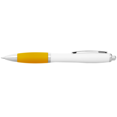 Dado que la gente escribe a diario, es esencial utilizar un bolígrafo fiable. El bolígrafo Nash es uno de ellos. El bolígrafo está hecho de material plástico ABS sólido que ofrece una larga vida útil. Gracias a su rápido mecanismo de clic, el bolígrafo es rápido de usar y tiene un agarre suave, que reduce cualquier tensión en la superficie de escritura. El bolígrafo Nash está disponible en diferentes combinaciones de colores y ofrece múltiples posibilidades de aplicación del logotipo.