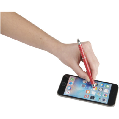 Bolígrafo de aluminio satinado con mecanismo de clic. Pulsador a juego con el cuerpo del bolígrafo. Con tinta negra. Ideal para grabar a láser.