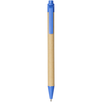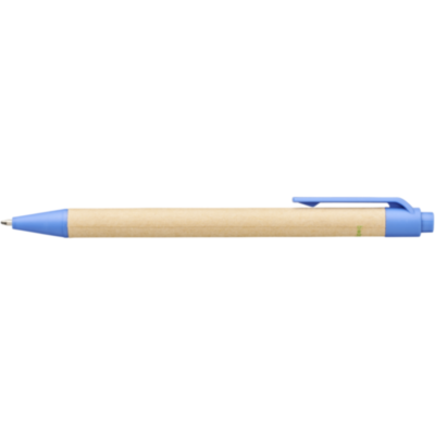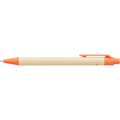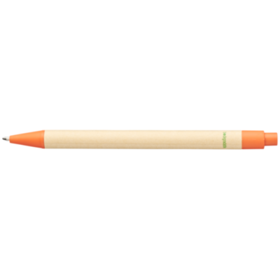 Bolígrafo ecológico con mecanismo de clic, cuerpo fabricado con papel biodegradable y detalles de plástico de maíz en varios colores. El color del cartón reciclado puede variar.