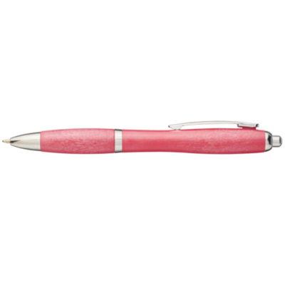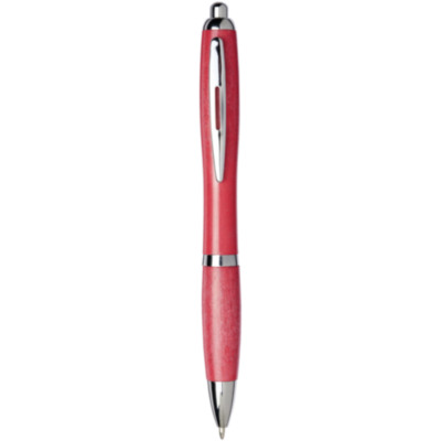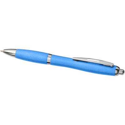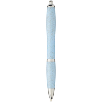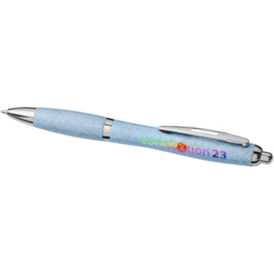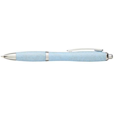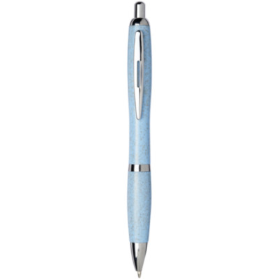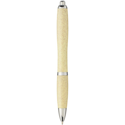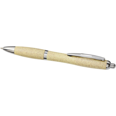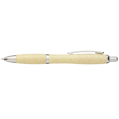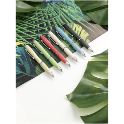 Bolígrafo con mecanismo de clic, con cuerpo de paja de trigo y acabado con llamativos detalles en color cromo. La paja de trigo es el tallo que queda después de cosechar los granos de trigo, lo que reduce la cantidad de plástico utilizado.