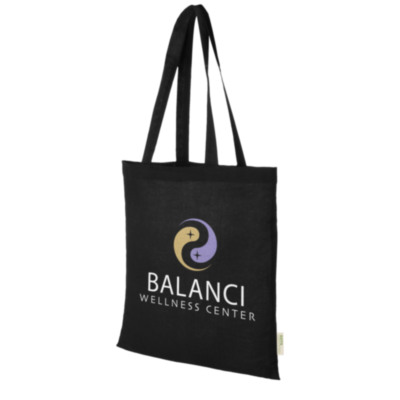 Bolsa tote sostenible con un gran compartimento principal abierto que ofrece mucho espacio para llevar todo lo esencial. Sus asas de 32 cm de longitud hacen que sea cómoda y fácil de llevar allá donde vayas. Esta bolsa tote está fabricada en la India con algodón orgánico de 100 g/m² con la certificación OEKO-Tex. Resiste hasta 5 kg de peso.