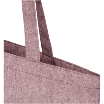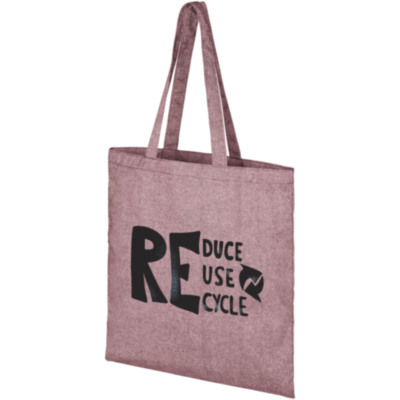 Bolsa tote de mezcla de poliéster de algodón reciclado de 150 g / m² con un asa desplegable de 31 cm de longitud. El algodón reciclado se fabrica a partir de los residuos preconsumo generados por las fábricas textiles durante el proceso de corte. Los colores similares se mezclan entre sí, lo que significa que no se requiere un teñido adicional. Esta bolsa se pliega fácilmente para que quepa en un espacio pequeño. El compañero perfecto para toda una variedad de actividades, tales como compras, excursiones o proyectos artesanales. Debido a la naturaleza del algodón reciclado, puede presentar una ligera variación de color. Esta característica contribuye claramente a una estética más auténtica.