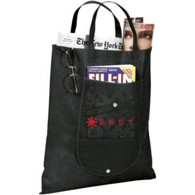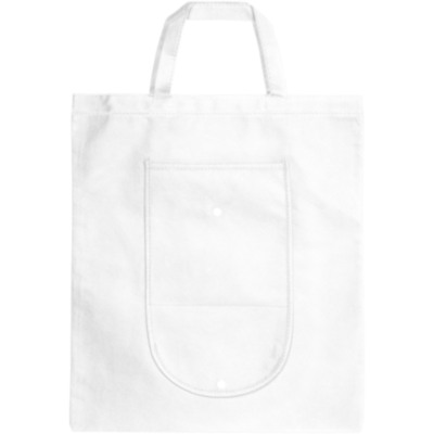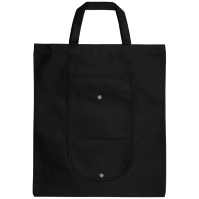 Bolsa plegable con un compartimiento principal abierto y un bolsillo en la parte delantera. Cierre con botón de plástico. Reutilizable y una gran alternativa a las bolsas de plástico. Las asas son de 14cm. El tamaño plegada: ancho 20 x alto 11cm. El artículo se envía desplegado, embalado plano.