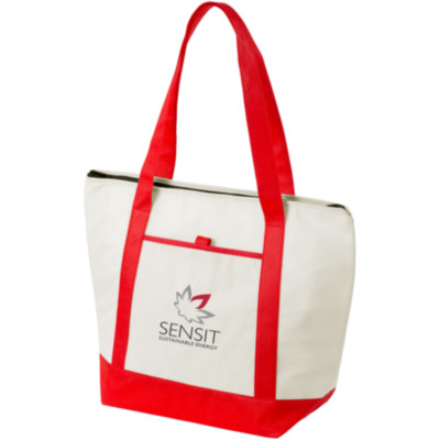 La bolsa refrigerante Lighthouse, de elegante diseño, parece una bolsa normal y corriente, pero las apariencias engañan. Ponga una lata fría en el gran compartimento principal, cierre la cremallera y el producto se mantendrá refrigerado. Las asas de 28 cms de largo hacen que la bolsa sea fácil de llevar al hombro. La bolsa nevera tiene un bolsillo frontal abierto y un soporte para bolígrafos (accesorios no incluidos). La bolsa nevera está hecha de plástico PP de 80 g/m², un material versátil y ligero.