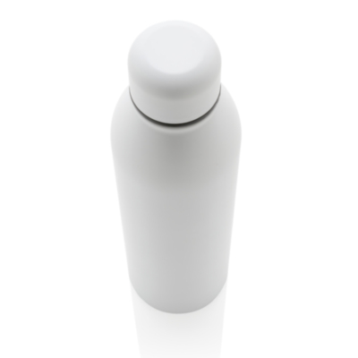Esta botella al vacío de acero inoxidable reciclado RCS está diseñada para disfrutar de tus bebidas durante mucho tiempo! La construcción al vacío de acero inoxidable reciclado de doble pared mantiene las bebidas frías durante 15 horas o calientes durante 5 horas. Esta botella se adapta a la mayoría de los portavasos estándar para automóviles, por lo que puedes llevarla a cualquier parte. Fabricado con materiales reciclados certificados RCS (Recycled Claim Standard). La certificación RCS garantiza una cadena de suministro completamente certificada de los materiales reciclados. Contenido reciclado total: 90% basado en el peso total del artículo. Sin BPA. Capacidad 500ml. Incluye embalaje kraft certificado FSC®.