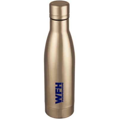 Mantén tus bebidas calientes durante 12 horas o frías durante 48 con el bidón de cobre con aislamiento al vacío Vasa. De doble capa y fabricada en acero inoxidable con aislamiento al vacío y una capa interior de cobre, que mantiene las bebidas calientes o frías en función de tus necesidades. No contiene BPA y ha sido sometida a pruebas y aprobada por la legislación alemana sobre seguridad alimentaria (LFGB) y por REACH en cuanto al contenido de ftalatos. Capacidad: 500 ml. Se entrega en una caja de regalo.
