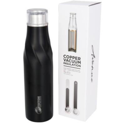 El diseño presenta un método de sellado automático para una fácil apertura y una experiencia de consumo más cómoda. Amplia abertura para rellenar y verter cómodamente. Construcción de vacío de acero inoxidable duradero, de doble pared, con aislamiento de cobre, que permite que la bebida permanezca caliente durante 12 horas y fría durante 48 horas, con la tapa antifugas y sellado automático. Capacidad de 650ml. Se presenta en una caja de regalo Avenue.