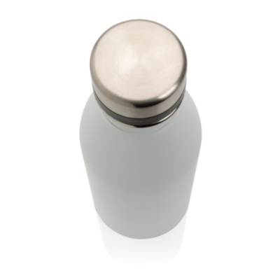 Esta botella reutilizable de tamaño perfecto y ligera está hecha de acero inoxidable duradero de 18/8. Antigoteo y perfecta para el transporte diario y la hidratación. Recomendado solo para agua fría. En múltiples colores. La botella de color blanquecino está en PMS Cool Grey 1. Contenido: 500 ml.