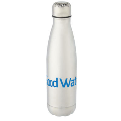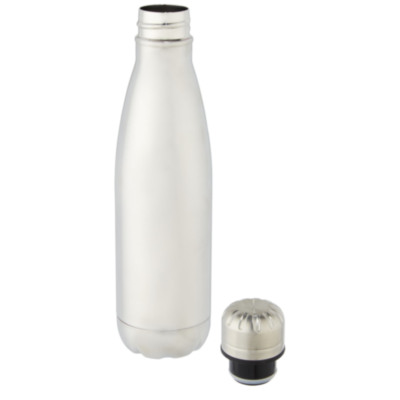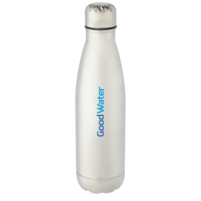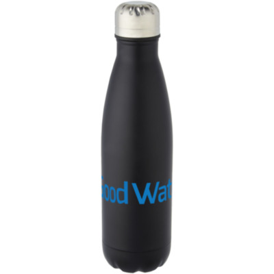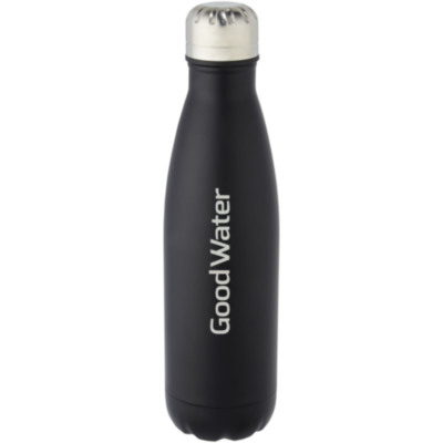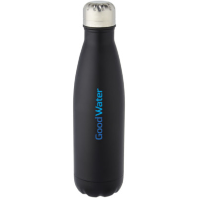 Botella de acero inoxidable con aislamiento al vacío y un diseño icónico. El acero inoxidable 18/8 con aislamiento mantiene las bebidas calientes o frías durante varias horas. Probado y homologado conforme a la legislación alemana sobre seguridad alimentaria (LFGB), y comprobado el contenido de ftalatos según la normativa REACH. Con una base que se adapta a la mayoría de los portavasos, esta elegante botella de agua es un artículo promocional perfecto. Capacidad de 500 ml. Se presenta en una caja de regalo de cartón reciclado.
