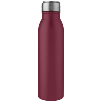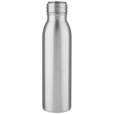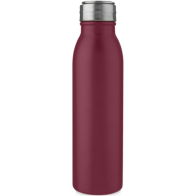 Botella deportiva de acero inoxidable 18/8 de una sola pared con tapa de rosca a prueba de derrames y asa de mano de aleación de zinc resistente. No contiene BPA y se ha probado y homologado según la legislación alemana sobre seguridad alimentaria (LFGB). Contenido de ftalatos probado y homologado según la normativa REACH. Se adapta a la mayoría de los portavasos de coche. Capacidad de 700 ml. Se recomienda lavarla a mano. Se presenta en una caja de regalo de cartón reciclado.