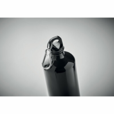 Botella de aluminio de pared simple con mosquetón. Capacidad: 1000 ml. El mosquetón no apto para escalar (uso no profesional). Impresión en sublimación disponible sólo en el artículo blanco. Anti fugas.