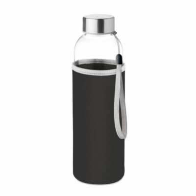 Botella de cristal con funda de neopreno. Capacidad: 500 ml. No apto para bebidas gaseosas. Anti fugas.
