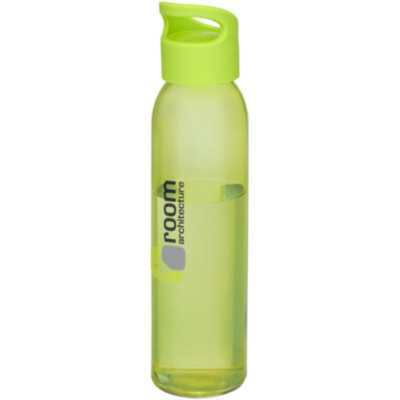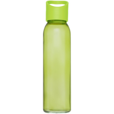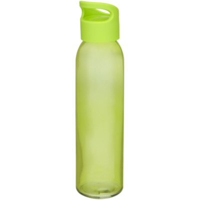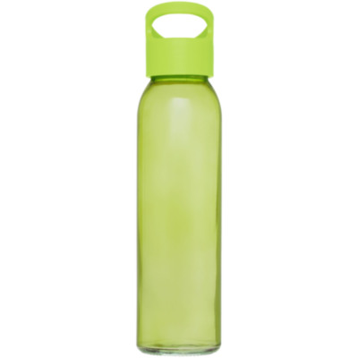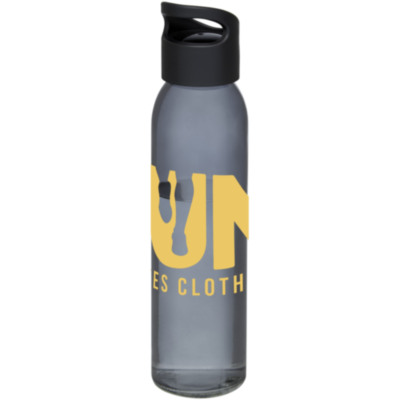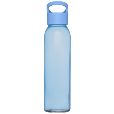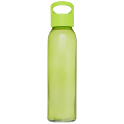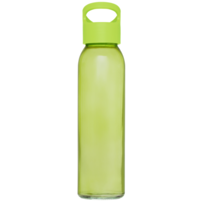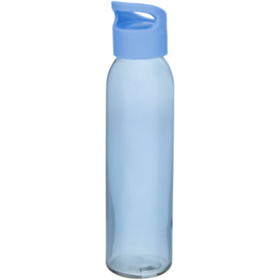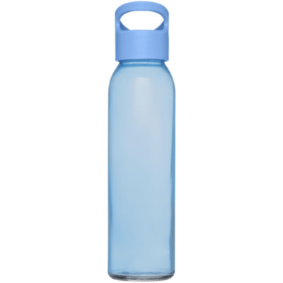 Botella de vidrio de una sola pared con tapa de rosca. La tapa lleva un asa para facilitar su transporte. Recomendado para bebidas frías. No apto para congelar ni para el microondas. Capacidad de 500 ml. Se presenta en una caja de regalo.