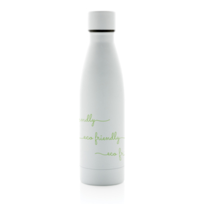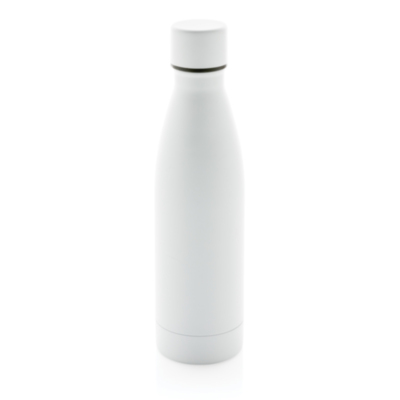 Esta botella al vacío de acero inoxidable reciclado RCS está diseñada para disfrutar de tus bebidas durante mucho tiempo! La construcción al vacío de acero inoxidable reciclado de doble pared mantiene las bebidas frías durante 15 horas o calientes durante 5 horas. Esta botella se adapta a la mayoría de los portavasos estándar para automóviles, por lo que puedes llevarlas a cualquier parte. Fabricado con materiales reciclados certificados RCS (Recycled Claim Standard). La certificación RCS garantiza una cadena de suministro completamente certificada de los materiales reciclados. Contenido reciclado total: 85% basado en el peso total del artículo. Sin BPA. Capacidad 500ml. Incluye embalaje kraft certificado FSC®.
