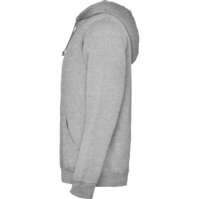 Sudadera capucha con bolsillo canguro y cordón plano ajustable. Puños y cinturilla con punto canalé 1x1 con elastano. Modelo de niño sin cordón.