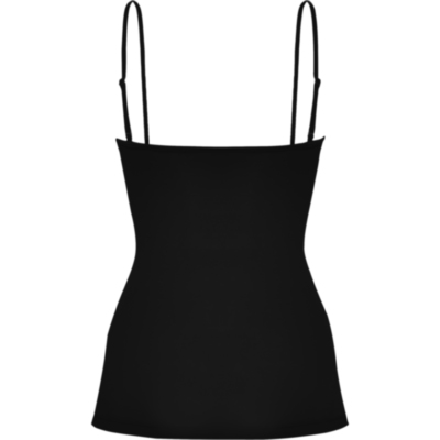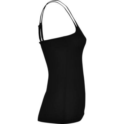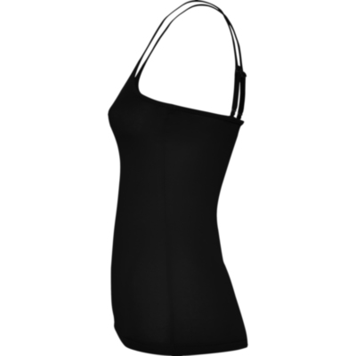 Camiseta de mujer con tirantes finos. Detalle en los ajustadores de plástico para el tirante. Corte entallado con costuras laterales.