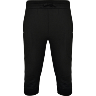 Bermuda deportiva para hombre con cinturilla elástica ancha ajustable mediante cordón, bolsillos laterales con vivo y bolsillo de parche trasero. Paneles laterales alargados con forma curva. Rodillas con pinzas a cuatro esquinas. Bajos de punto anchos a desnivel.