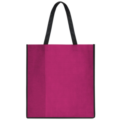 Bolsa cosida combinada en tejido non woven (no tejido) con efecto metalizado y poliéster jaspeado. Asa larga de cinta, fuelle y ribeteado en tejido non woven de color negro. .