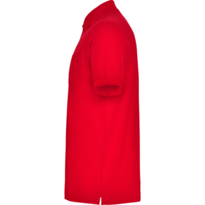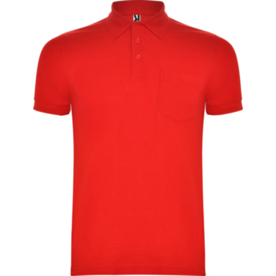 Polo de manga corta con bolsillo, cuello y bocamangas acanalado y tapeta de 3 botones. Cubre costuras reforzado en cuello.