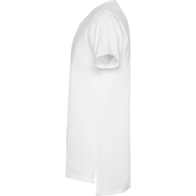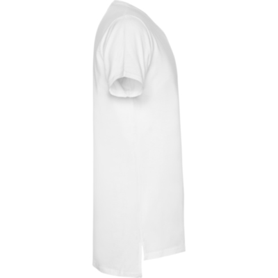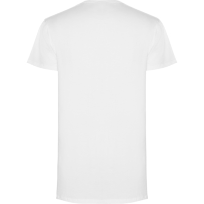 Camiseta de manga corta y talle extra largo, con cuello redondo de dos capas con elastano. Aperturas laterales en el bajo. El patronaje de la espalda es ligeramente más largo que el delantero.