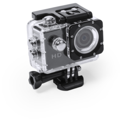 Cámara deportiva de alta calidad de captura de vídeo HD 720p, de diseño compacto y resistente, especialmente diseñada para uso intensivo. Incluye carcasa sumergible hasta 30m de profundidad y multitud de accesorios para ajuste en casco, manillar o cinturón, así como correas ajustables para cabeza y torso o un adaptador giratorio de 360º. La versatilidad y resistencia de esta cámara deportiva la convierten en el gadget perfecto para capturar, con una calidad excepcional, cualquier actividad deportiva. Con función cámara de fotos Full HD 1080p, ranura para tarjetas micro SD de hasta 32 GB de capacidad, sistema multilenguaje, y recargable mediante cable microUSB -incluido-. Presentada en atractiva caja de diseño.