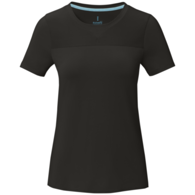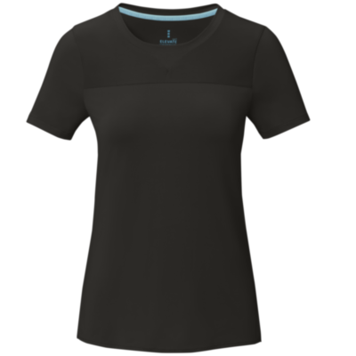La camiseta Borax de manga corta y ajuste fresco para mujer es la mezcla perfecta de estilo y rendimiento deportivo. Fabricada con un 90% de materiales reciclados certificados GRS, mezclados con elastano para garantizar la elasticidad y el confort, con un peso del tejido de 160 g/m². El acabado cool-fit ayuda a mantenerse fresco y seco. La certificación GRS garantiza una cadena de suministro 100% certificada, desde la materia prima hasta nuestras técnicas de impresión, lo que convierte a esta prenda en una elección más responsable.