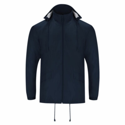 Chubasquero unisex de cuello alto y capucha extraíble. La capucha cuenta con cordones ajustables para un ajuste personalizado y velcro para facilitar su plegado y guardado. Su interior incorpora un recubrimiento de plata. Cuenta con cremallera central y tirador al tono. Incluye: dos bolsillos laterales con solapa, puños elásticos que garantizan un ajuste cómodo y un bajo ajustable con cordones interiores que permiten un ajuste adicional. Dispone de una goma elástica en el interior de uno de los bolsillos, facilitando el plegado y almacenamiento del chubasquero cuando no está en uso.
