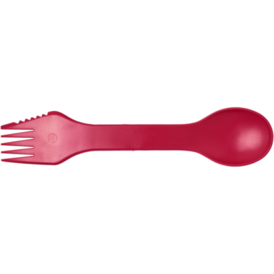 Una combinación de tenedor y cuchara con filo de sierra. Ideal para picnics, campamentos y otras actividades al aire libre. .
