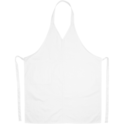 Delantal de sarga con cuello en V, 1 bolsillo y cinta para atar. Fabricado con 90 % poliéster y 10 % algodón.