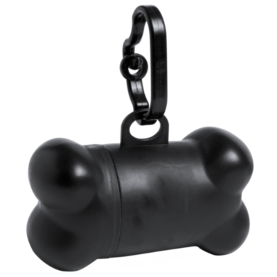 Dispensador de bolsas para mascotas con resistente cuerpo en vivos colores y diseño de hueso. Con mosquetón de transporte a juego y 15 bolsas incluidas.