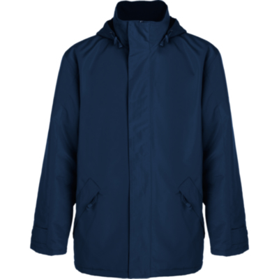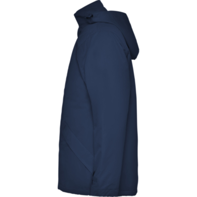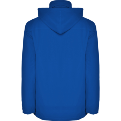 1.- Capucha plegada y extraible en cuello con cierre velcro.