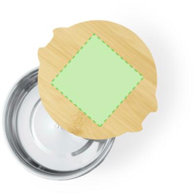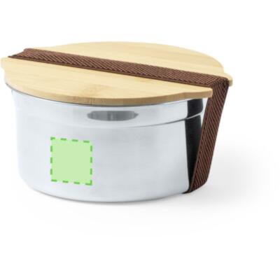 Fiambrera de 800 ml de capacidad fabricada en acero inox. Con tapa hermética en bambú y cinta elástica de cierre. Presentada en caja individual de diseño.