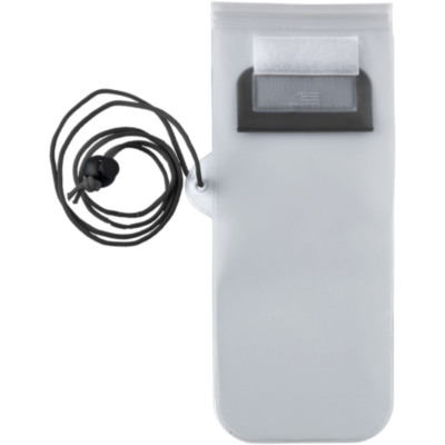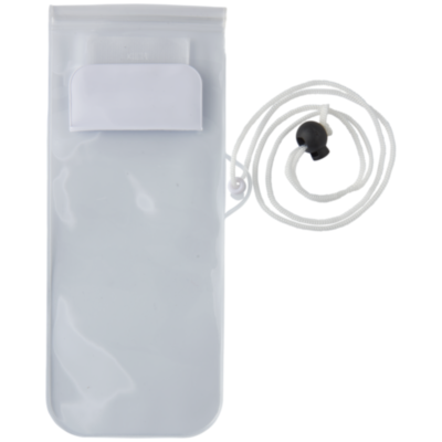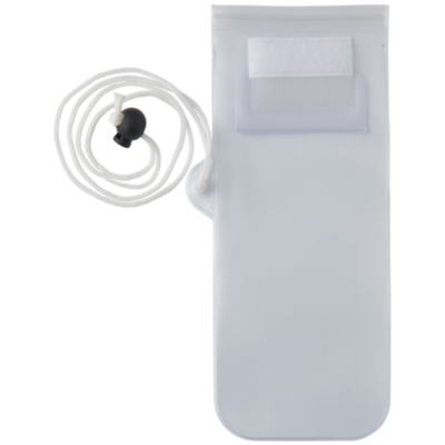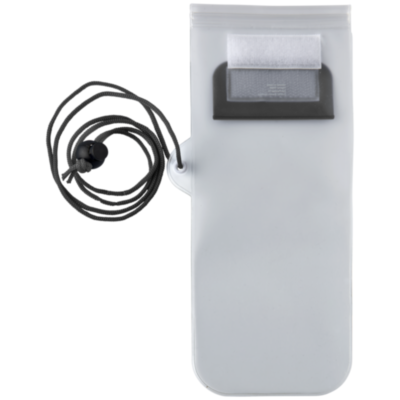 Bolsa de almacenamiento transparente mate, con ventana frontal transparente para las pantallas táctiles, tiene cierre de cremallera y solapa de color con cierre de velcro. Incluye un cordón para el cuello con cierre de cordón.