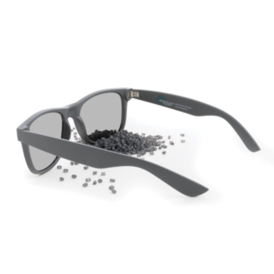 Gafas de sol de alta calidad fabricadas con montura de PC reciclada con certificación GRS. El contenido de la montura es 100% reciclado. La certificación GRS garantiza una cadena de suministro certificada completa de los materiales reciclados. Los lentes son acrílicos ahumados y cumplen con los rayos UV 400 y CAT 3. Se presentan en una caja de regalo kraft.