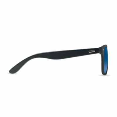 Gafas de sol negras y patillas con un recubrimiento de bambú y lentes efecto espejo. Protección UV400.