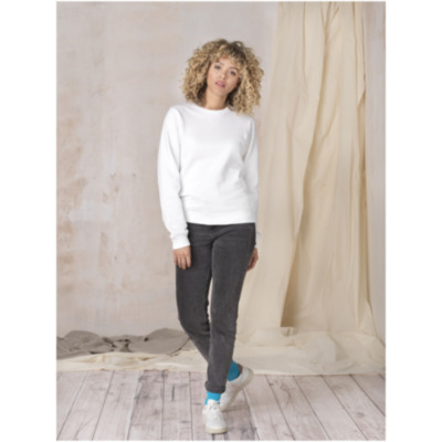 Jersey de cuello redondo reciclado orgánico para mujer, una fusión de estilo y sostenibilidad. Este jersey combina la moda sostenible con la comodidad. Cuenta con un cuello en V de punto plano en la parte delantera. Su interior suave y afelpado, proporciona una sensación de comodidad. Está fabricado con una mezcla de 280 g/m² de algodón orgánico y poliéster reciclado. Este jersey está diseñado con un corte entallado para un ajuste perfecto.