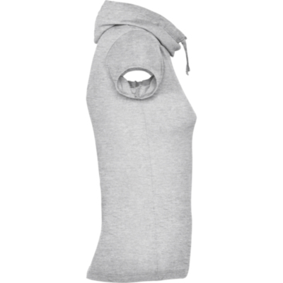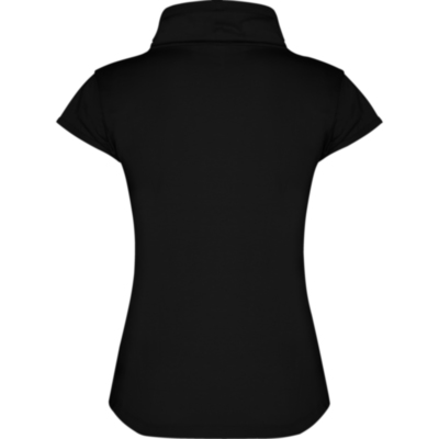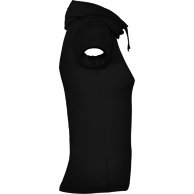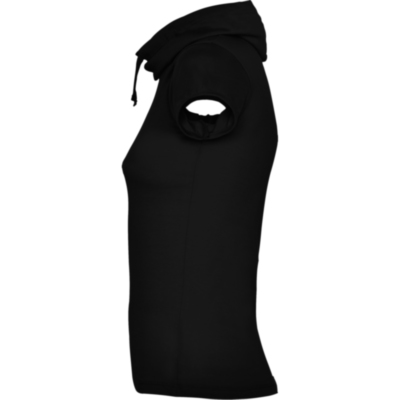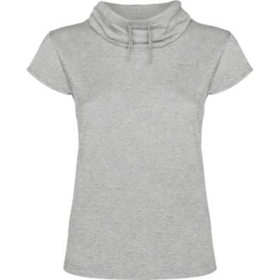 Camiseta manga corta, escote amplio de base y cuello chimenea con ajuste de cordón. Costuras laterales y talle con forma.