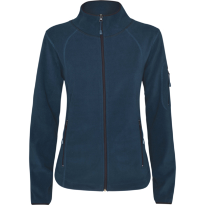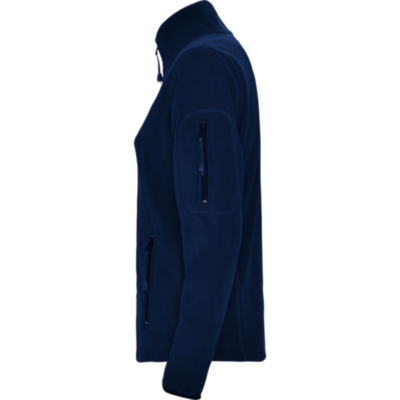 Chaqueta micropolar para deporte al aire libre, con cuello alto y manga larga con ribetes en contraste. Bolsillo con cremallera en manga izquierda y cremallera central, ambas en contraste. Costuras en lateral y pecho. Codera en el mismo tejido.