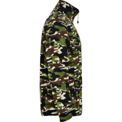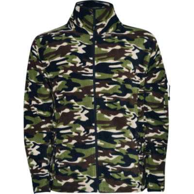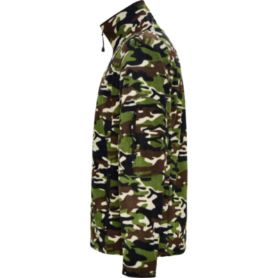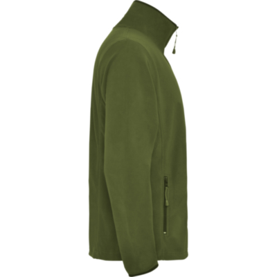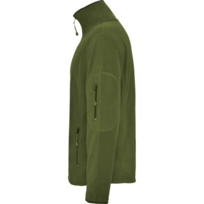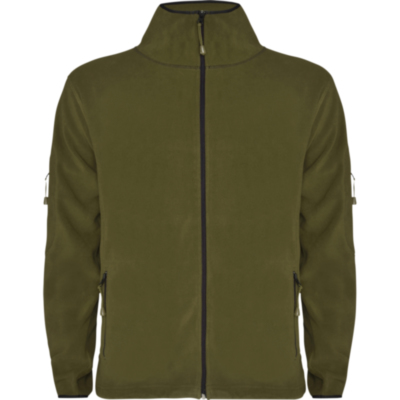 Chaqueta micropolar para deporte al aire libre, con cuello alto y manga larga con ribetes en contraste. Bolsillo con cremallera en manga izquierda y cremallera central, ambas en contraste. Costuras en lateral y de costadillo. Codera en el mismo tejido.