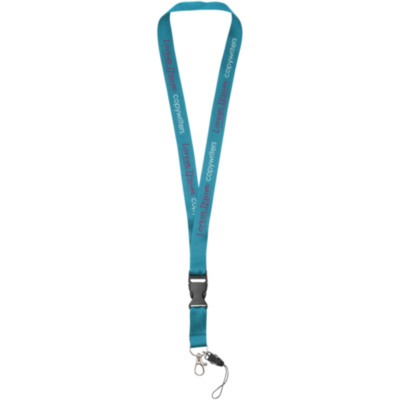Cordón identificativo "Sagan" con hebilla desmontable y soporte para móvil. Este cordón identificativo multifunción ofrece una hebilla desmontable, mosquetón y soporte para móvil. En una amplia gama de colores con impresionantes tamaños de logotipos, la oferta más completa disponible.